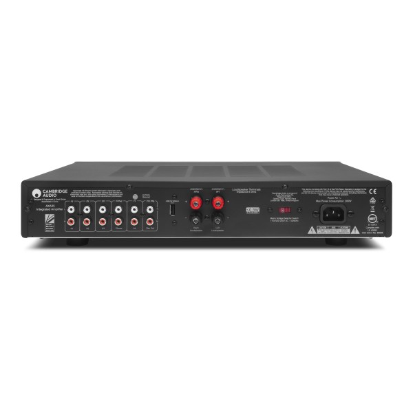 El AXA35 es un amplificador que posee buenas conexiones, con nada menos que 4 pares de entradas RCA, además de un par de tomas phono para un tocadiscos y un par de salidas de grabación. Hay una toma USB en la parte posterior para actualizaciones técnicas. Los postes de unión (conectores) de los altavoces de alta fidelidad, son compatibles con conectores tipo banana, esto significa que el cable grueso se conecta de forma segura para un sonido auténtico.