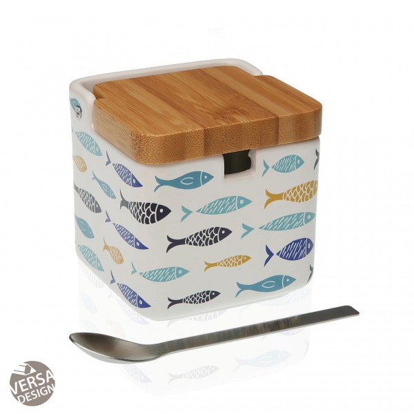 Azucarero cerámico con tapa de bambú y cuchara Largo: 8.5 cm.Ancho: 8.5 cm.Alto: 8.7 cm.Material: CERÁMICA