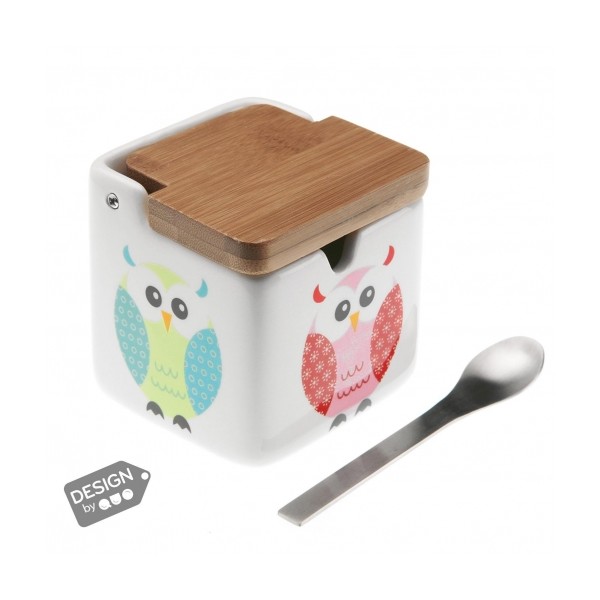 Azucarero cerámico con tapa de bambú y cuchara Largo: 8.5 cm.Ancho: 8.5 cm.Alto: 8.7 cm.Material: CERÁMICA