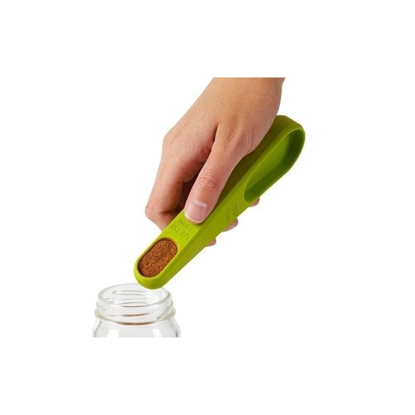 Práctica cuchara de silicona con 4 medidas de 1 TSP, 1/2 TSP, 1/4 TSP y 1 TBSP.