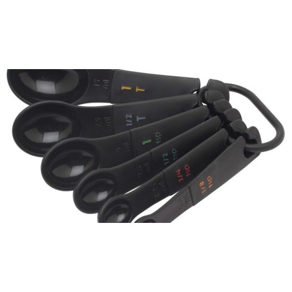 Práctica cuchara de silicona con 4 medidas de 1 TSP, 1/2 TSP, 1/4 TSP y 1 TBSP. Diseño de Jordan Murphy Disponible en tres colores: rojo verde y negro. Libre de Bpa