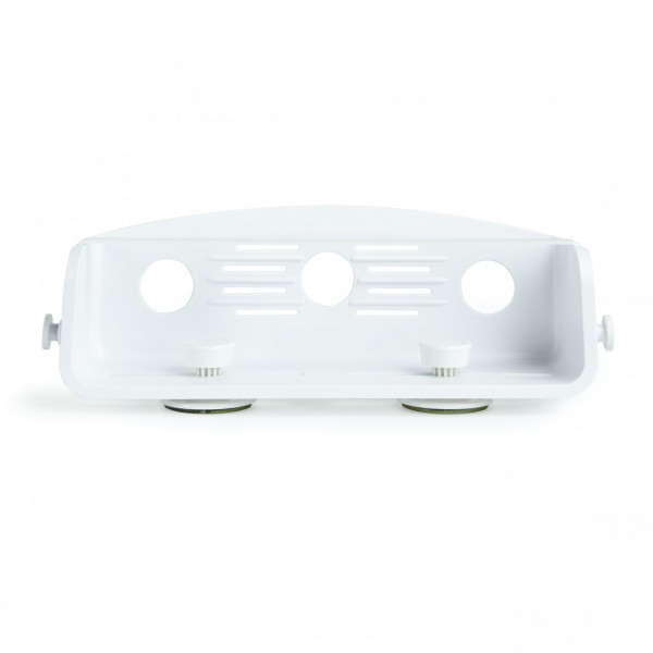 El portaescobillas queda abierto hasta reinsertar la escobilla Cabezal cónico y cerdas en ángulo para una limpieza profunda Bandeja de goteo con ranuras de ventilación para un secado rápido Disponibles cabezales de recambio Color blanco