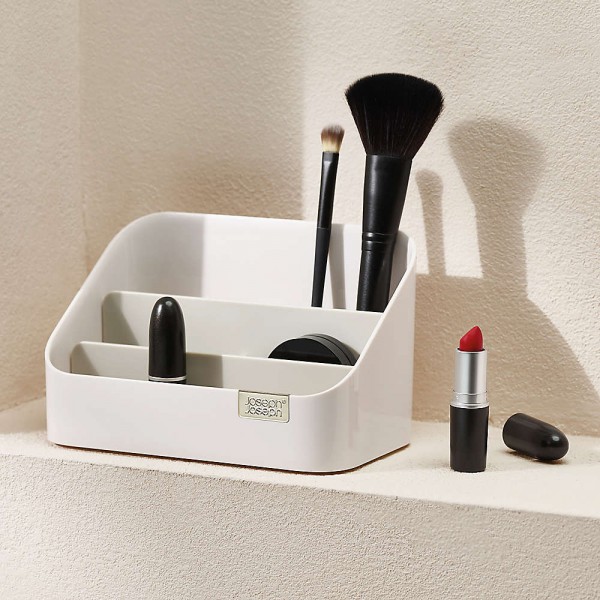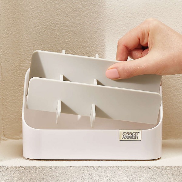 El portaescobillas queda abierto hasta reinsertar la escobilla Cabezal cónico y cerdas en ángulo para una limpieza profunda Bandeja de goteo con ranuras de ventilación para un secado rápido Disponibles cabezales de recambio Color blanco