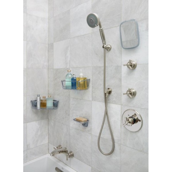 Un soporte para papel higiénico y estante en uno, este elemento esencial del baño libera espacio en el piso mientras proporciona un lugar práctico para colocar su teléfono, llaves u otros accesorios pequeños. Fácil de instalar, el soporte adhesivo para papel higiénico y estante Flex incluye tiras adhesivas impermeables y no dañinas que se pueden aplicar...