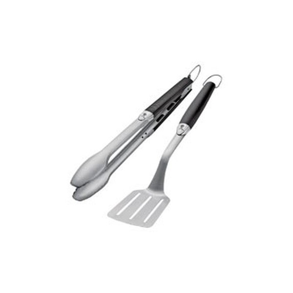 Enteramente hechos de acero inoxidable cepillado, estos accesorios aportan un toque de elegancia único a las barbacoas Weber. Este conjunto está compuesto por una espátula (long. 45 cm), un tenedor (long. 42,5 cm) y una pinza (long. 43,5 cm)