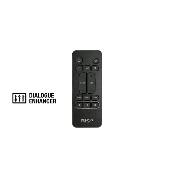 El modo Denon Virtual Surround ofrece una simulación de sonido surround de cine en casa con decodificación Dolby Digital y DTS para Blu-ray, DVD, DVB y otros contenidos con codificación surround. Avanzados algoritmos psicoacústicos simulan de manera realista el sonido de un sistema de altavoces surround de cine en casa multicanal. Disfrutarás de un sonido surround envolvente con una elegante barra de tamaño compacto.