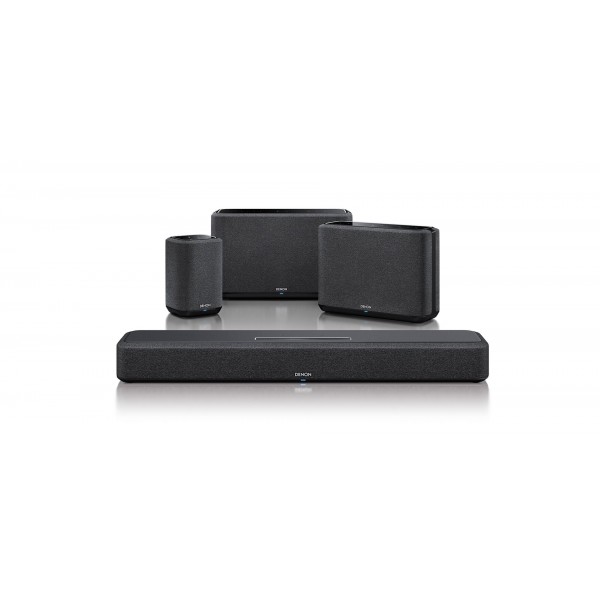 Puedes emparejar los altavoces opcionales Denon Home 150, 250 ó 350 para que hagan las veces de altavoces traseros y así crear un sonido surround Denon dinámico a tu alrededor. Y si deseas tener aún más graves en tu cine en casa, conecta un subwoofer inalámbrico Denon DSW-1H. *Esta función será añadida mediante una actualización de software en la primavera de 2021.