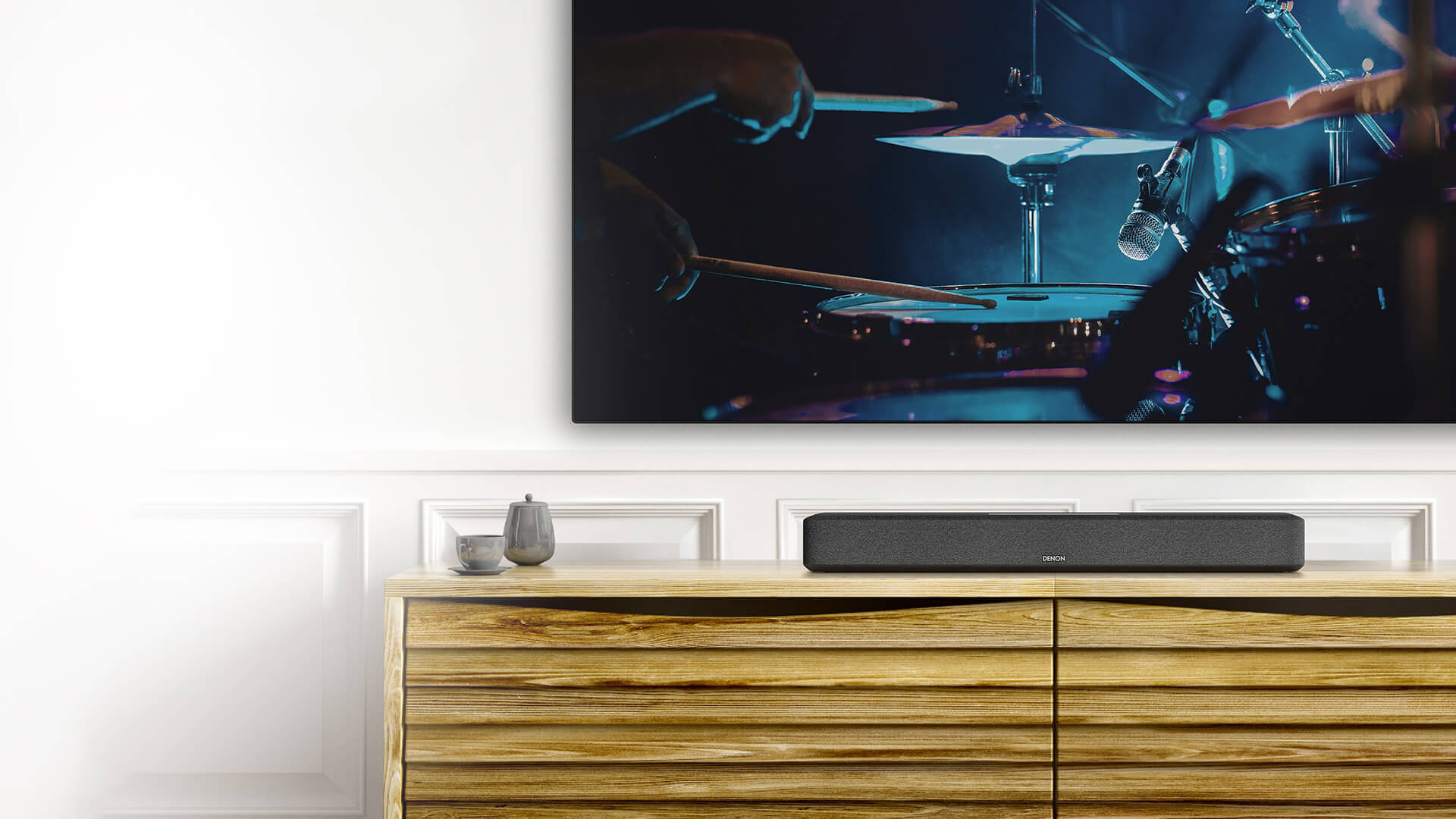 Las barras de sonido grandes y voluminosas pueden tener razón de ser, pero no debajo del televisor. Con un tamaño compacto de tan solo 65 centímetros de ancho, la barra de sonido Denon Home 550 ahorra espacio, sin sacrificar el rendimiento. Y tiene un diseño industrial depurado y sencillo que se integra en cualquier habitación.