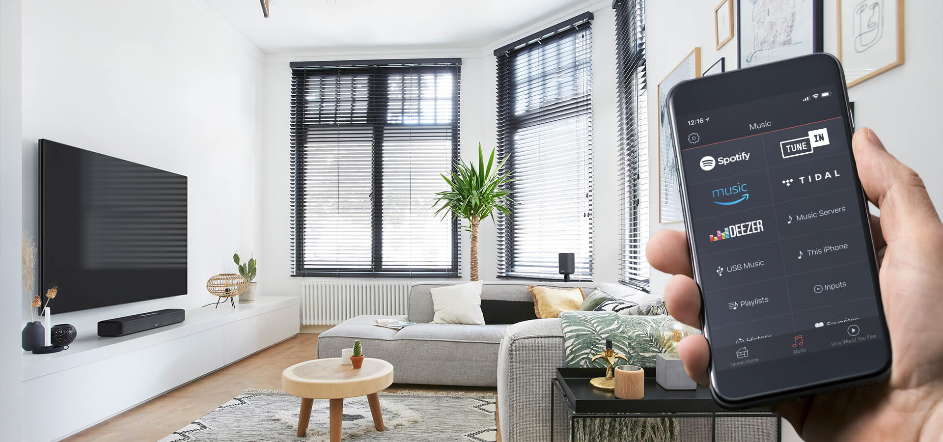 Con HEOS integrado, cada habitación de tu casa puede tener su propio sonido. También puedes agrupar varios altavoces, barras de sonido, reproductores en red Denon Home o receptores AV con HEOS integrado para reproducir la misma canción en toda la casa a través de la red doméstica. Con HEOS integrado, multiroom significa múltiples opciones.