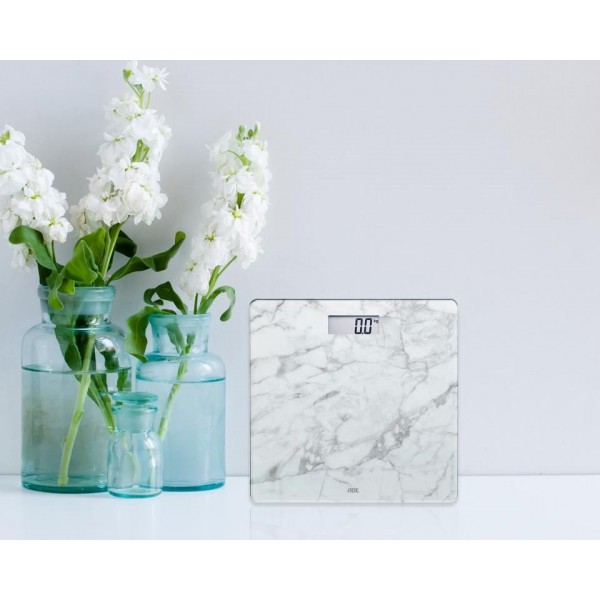 SUPERFICIE DE PESAJE: Vidrio de seguridad PANTALLA: LCD ø 60 mm; iluminación; dígitos blancos FUNCIONAMIENTO: Auto-encendido al pisar FUNCIONES: superficie redonda; Iluminación del interior LED azul; iluminación mientras se pesa; indicador de sobrecarga y batería; indicador de estado; apagado automático CAPACIDAD: 180 kg (graduación 100 g) UNIDAD DE...