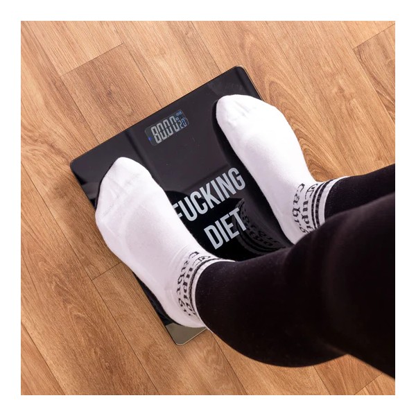 Enfréntate a la puta dieta y dale una patada a los números rebeldes con esta báscula de baño original. Sabemos que las dietas pueden ser como un viaje de montaña rusa, pero la báscula negra te mantendrá motivado y te mostrará que cada pequeño progreso cuenta. Así que, aunque estés harto de contar calorías y evitar carbohidratos, ¡diviértete aplastando tus metas con estilo usando esta fantástica báscula de baño con mensaje!