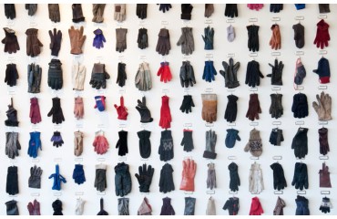 La "pared de guantes" es una colección de más de 100 guantes que los empleados de Oxo han recogido por la ciudad a través de los años.