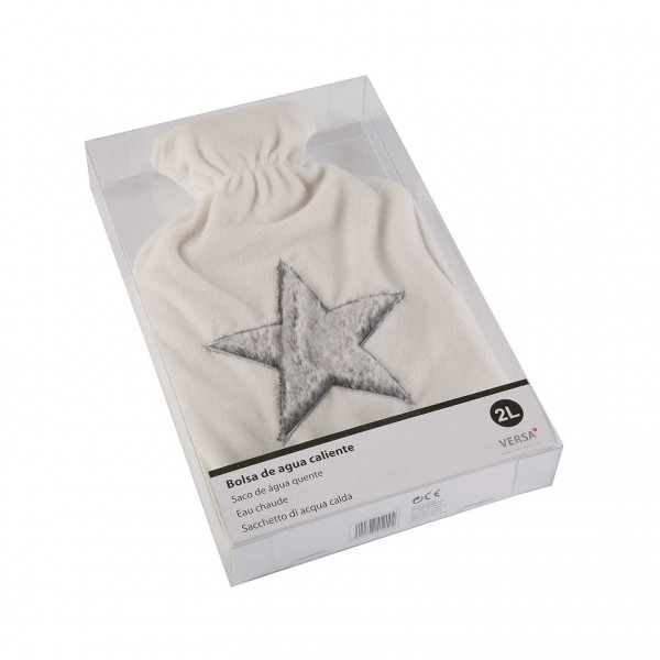 Bolsa de agua caliente. 20 x 33 cm. aprox 2 litros de agua Sacar la funda para lavar. No lejía. Secar en plano.