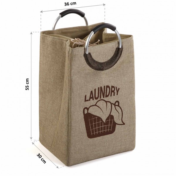 Cesto para la ropa sucia con asas. Fabricado en poliester. Altura 55 cm. Ancho 30 cm. Largo 36 cm.