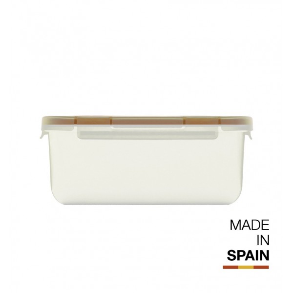 Contenedores 100% herméticos No se manchan, no cojen olores, no se deforman. Seguros como el vidrio, ligeros como el plástico. Tapa translúcida con ventana para ver claramente el interior Permiten uso intensivo en microondas, lavavajillas o congelador (desde -20ºC hasta 200ºC) Fabricado en España con plástico premium de efecto cerámico, sin BPA.