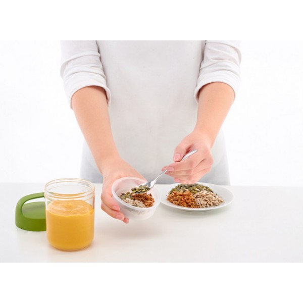Fiambrera portátil para snacks, "on the go" de Oxo. Dos compartimentos a prueba de fugas para mantener separados ingredientes secos y húmedos Apta para microondas y lavavajillas Cuatro fijaciones para mantenerla bien cerrada Resistente tapa de tritán, transparente y libre de BPA. Junta de silicona extraíble para limpiar con facilidad. Puede usarse sin el...