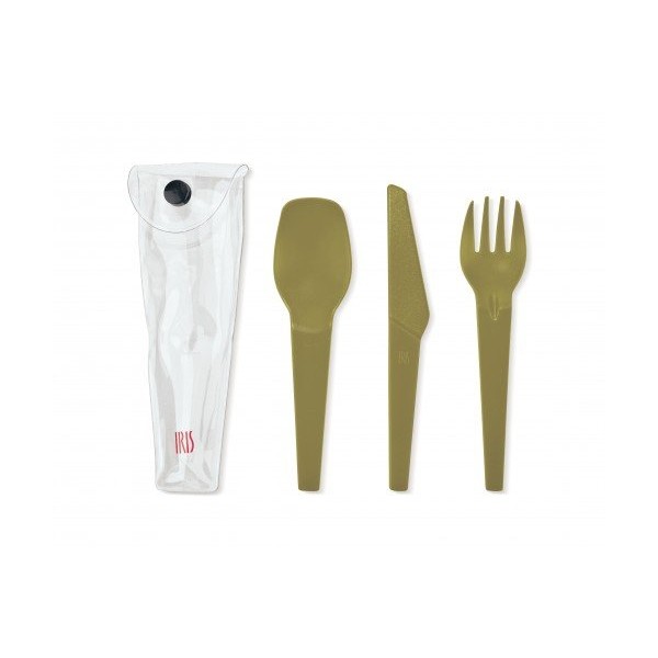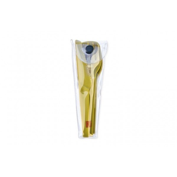 Set compuesto por cuchara, cuchillo y tenedor. Totalmente