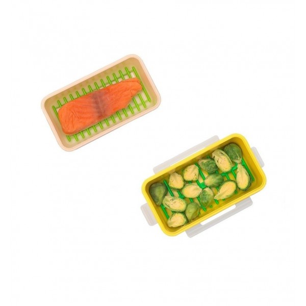 Contenedores 100% herméticos No se manchan, no cojen olores, no se deforman. Seguros como el vidrio, ligeros como el plástico. Tapa translúcida con ventana para ver claramente el interior Permiten uso intensivo en microondas, lavavajillas o congelador (desde -20ºC hasta 200ºC) Fabricado en España con plástico premium de efecto cerámico, sin BPA.