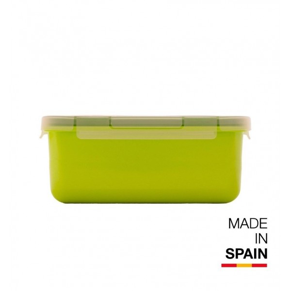 Contenedores 100% herméticos No se manchan, no cojen olores, no se deforman. Seguros como el vidrio, ligeros como el plástico. Tapa translúcida con ventana para ver claramente el interior Permiten uso intensivo en microondas, lavavajillas o congelador (desde -20ºC hasta 200ºC) Fabricado en España con plástico premium de efecto cerámico, sin BPA.