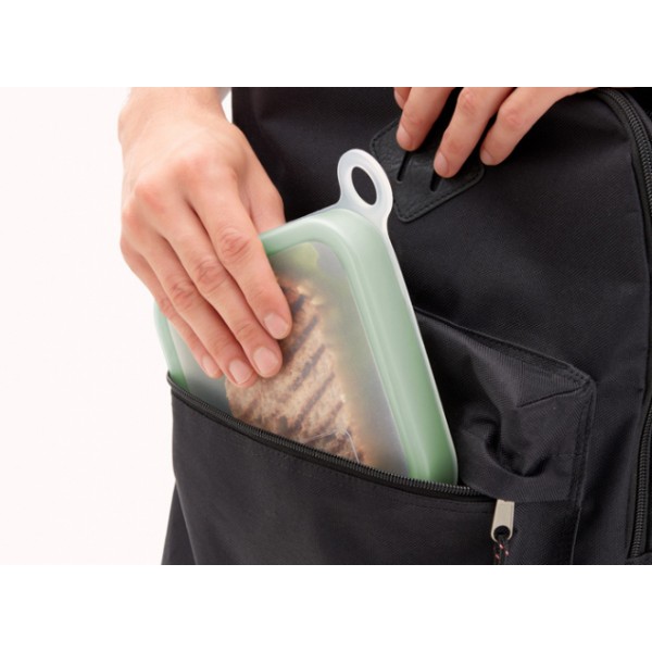 Bolsa flexible y ligera de diseño moderno. Interior aislante. Bolsillos internos y externos. Apertura total para mejor accesibilidad y limpieza. Cinta colgadora extensible. Fácil de almacenar. Incluye dos contenedores (0,75L + 0,5L).