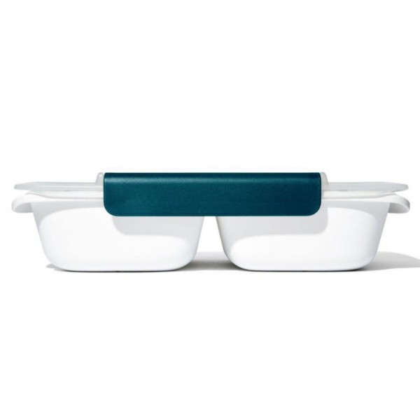 Fiambrera portátil para snacks, "on the go" de Oxo. Dos compartimentos a prueba de fugas para mantener separados ingredientes secos y húmedos Apta para microondas y lavavajillas Cuatro fijaciones para mantenerla bien cerrada Resistente tapa de tritán, transparente y libre de BPA. Junta de silicona extraíble para limpiar con facilidad. Puede usarse sin el...