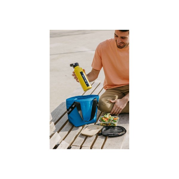 Bolsa flexible y ligera de diseño moderno. Interior aislante. Bolsillos internos y externos. Apertura total para mejor accesibilidad y limpieza. Cinta colgadora extensible. Fácil de almacenar. Incluye dos contenedores (0,75L + 0,5L).