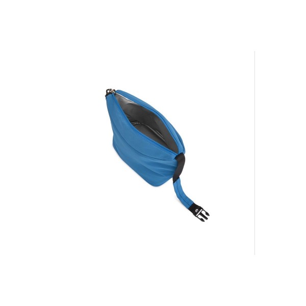 Incluye una asa de mano con apertura y cierre con click que permite colgarla en cualquier parte.
