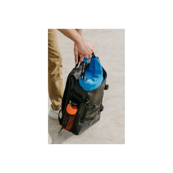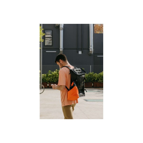 Se puede llevar en la mano, colgada de otra mochila o bicicleta...etc. o incluso dentro de otra bolsa más grande.