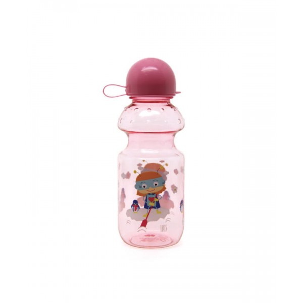 Botella infantil fabricada en Tritan. Material resistente, inocuo y que no transfiere ni olores ni sabores. 100% libre de BPA. Es translúcida para ver el contenido y cantidad de líquido en la botella y su forma ergonómica facilita el agarre a los más peques. Dispone de boquilla con cierre para evitar fugas y de tapón unido a la botella.