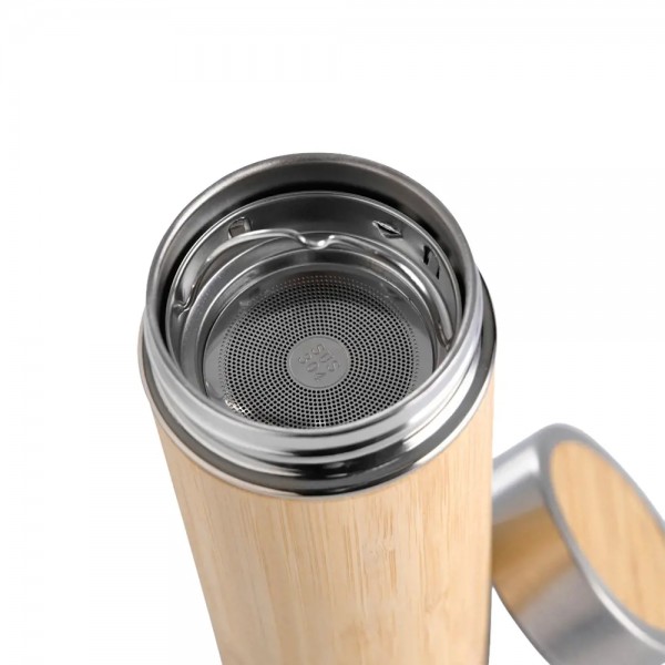 Vaso térmico con infusor de palanca, que podemos levantar facilmente para terminar de infundir. Apto para microondas y lavavajillas Material plástico libre de BPA