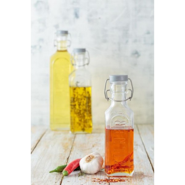 Botella de vidrio clip top con indicador de medida