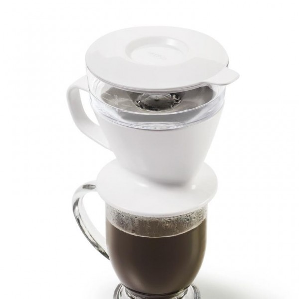Preciosa cafetera y tetera en cerámica blanca, con un finísimo filtro de acero inoxidable. Son un simple giro pasamos de una tetera a una cafetera de goteo con filtro permanente. El finísimo filtro de acero inoxidable extrae perfectamente todos los aromas y aceites del café; dándole la vuelta se transforma en una tetera con un excelente infusor con sitio...