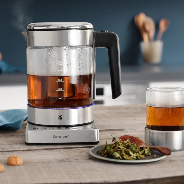 Hervidor de cristal con Función para preparación de té e infuciones con 5 temperaturas ajustables que indica con un pitido que cuándo se ha alcanzado la temperatura deseada.
