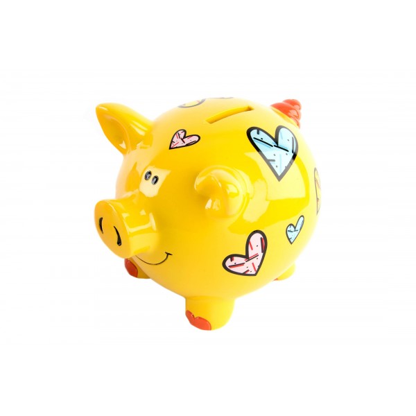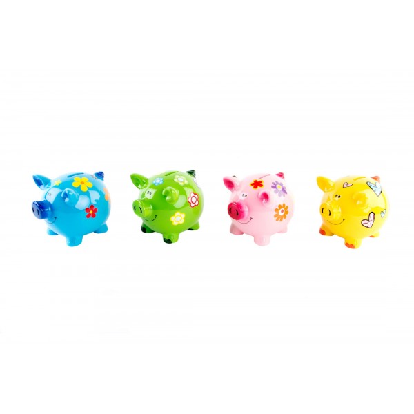 Tapa plástica inferior para acceder al contenido Típca hucha de cerdito con jaula y paja incluidas. Material: Cerámica