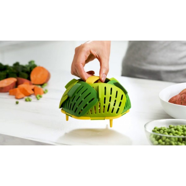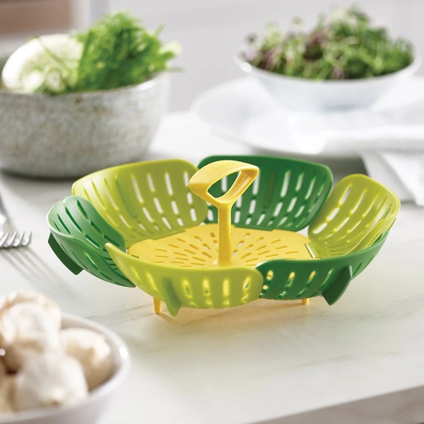Sus altas patas lo mantienen lejos del agua deseada Las paredes altas mantienen los alimentos fuera del agua hirviendo El cesto de silicona se flexiona para adaptarse a todo tipo de ollas o ollas a presión que tengan un diámetro de 18 cm o más. Fondo con capacidad para adaptarse a alimentos más grandes como filetes de pescado. Cómo almacenaje permite...