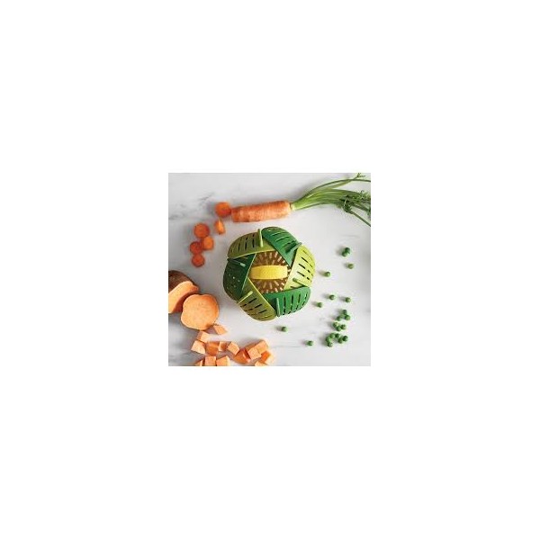 Color verde Permite cocinar al vapor varios alimentos a la vez. Antiadherente e higiénico. Dos tamaños : Pequeño para ollas de 19 a 22 cm de diámetro. Grande para ollas de 24 a 26 cm.