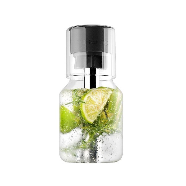 Gran abertura para utilizar con frutas... La pieza de silicona ayuda a la hora de servir, para que sea fácil y cómodo y sujete la barra. Elegante tapa, que sirve a la vez, también como vaso. Dos tamaños disponibles: 750/1000 ml. Apto para lavavajillas.