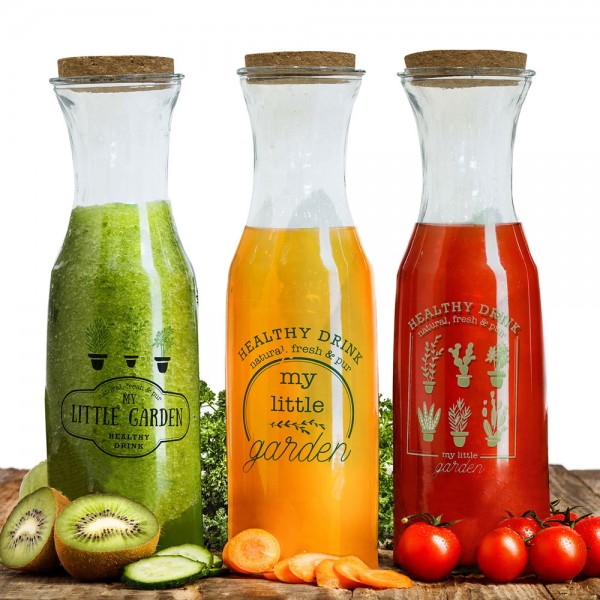 Elegante tapón de bola Para todo tipo de bebidas Tapa de chromargan acero, tapón de silicona y plástico. Tamiz integrado para hielo, hierbas y pepitas Hecha de vidrio de borosilicato soplado a mano termorresistente Cabe en la puerta de la nevera 1 litro de capacidad