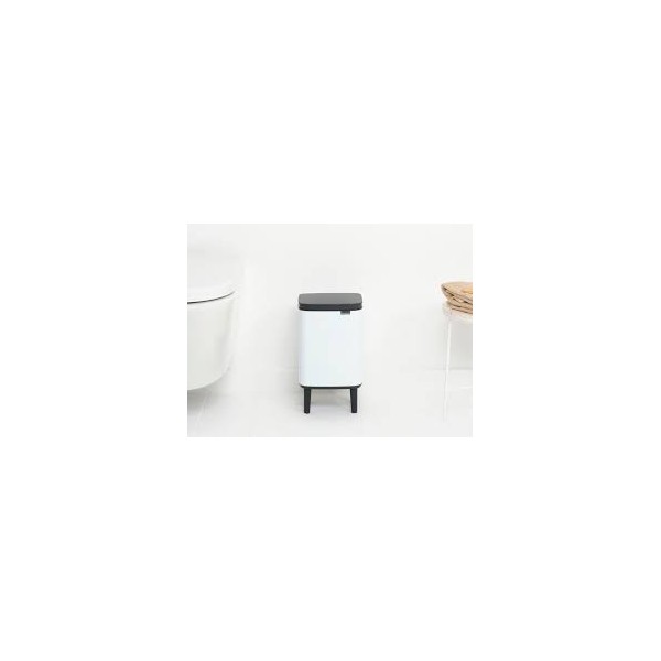 Color acero mate antihuellas Diseño con la parte posterior plana para ahorrar espacio – se ajusta perfectamente a la pared o al armario de cocina. No hace falta agacharse para tirar los desperdicios. Se abre silenciosamente con un ligero toque Base antideslizante. Fácil de transportar. Nivel bronce en la certificación Cradle-to-Cradle 10 años de garantía...