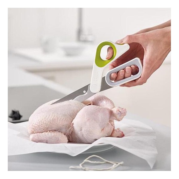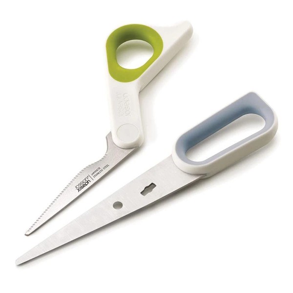 Las tijeras más inteligentes del mundo! Cortan con facilidad materiales muy resistentes Cuchillas con forma curvada para un uso más seguro Incluye accesorio para abrir botellas Aplastar ajos, partir nueces, pelar cables ... Acero endurecido (templado) Amplia zona de agarre para mayor comodidad Apta para diestros y zurdos Aptas para lavavajillas