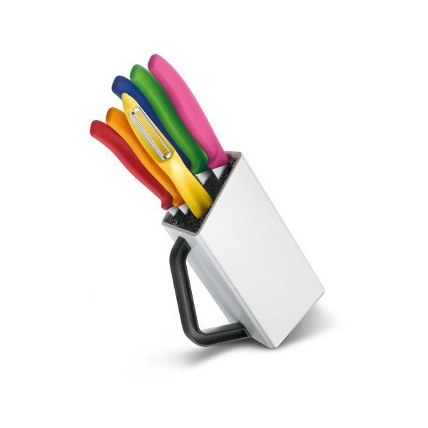 Galardonado con el Premio Innovación en la Cocina 2014, este pequeño bloque de cuchillos de uso general marcará una gran diferencia. Cocine como un profesional y use el inteligente sistema de codificación por colores para distinguir sus cuchillos. Con un diseño moderno y gran funcionalidad, el bloque de cuchillos de uso general Swiss Classic es un auténtico clásico suizo.