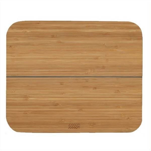 La tabla de cortar de bambú Joseph Joseph Chop2Pot tiene un diseño plegable único con una bisagra de silicona en el centro que hace que verter comida picada en una cacerola sea muy fácil.