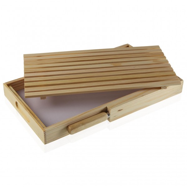 Tabla para cortar el pan con bandeja recogemigas. Fabricada en bambú natural, robusta y muy resistente.