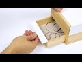 Joyero de múltiples compartimentos, en madera color natural y metal.