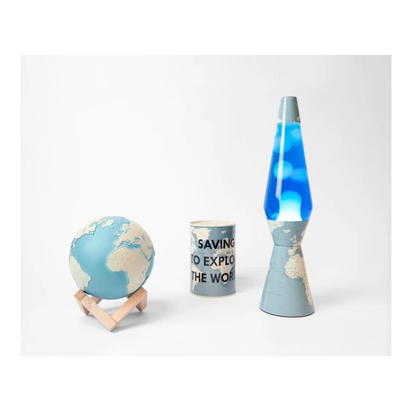 Lámpara de lava con base de mundo.