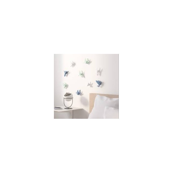9 preciosas mariposas en color blanco. Contienen apliques para fijarlas a la pared. Fáciles de limpiar.