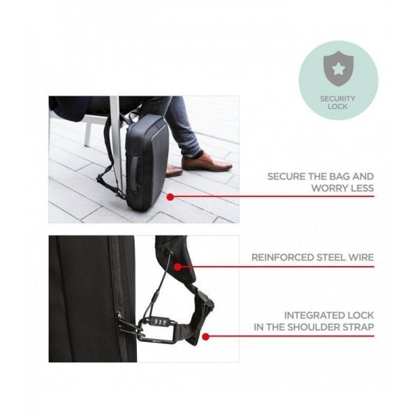 La mejor mochila para los desplazamientos urbanos! Cada día se producen más de 400.000 robos en los bolsos en todo el mundo. Ya no tendrás que preocuparte que te pueda suceder a ti con esta mochila antirrobo Bobby XL! Adecuada para portátiles y tablets de 17 pulgadas 47 x 38 x 17 cm