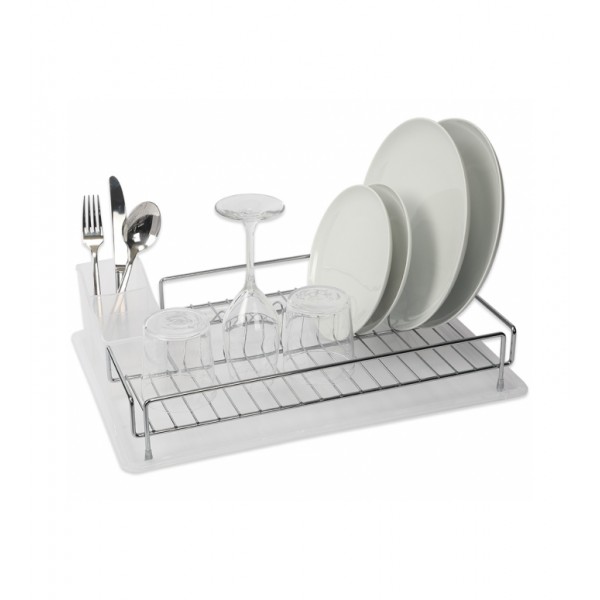 Escurreplatos de acero inoxidable. Incluye bandeja para recoger el agua y escurridor para cubiertos.