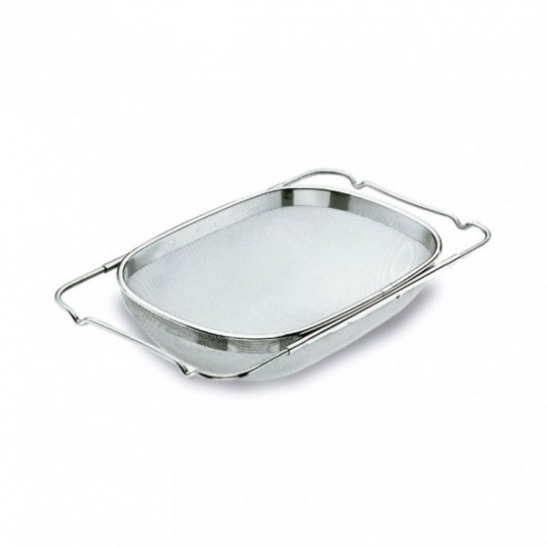 Escurridor de malla fina con patas y asas para mayor comodidad.