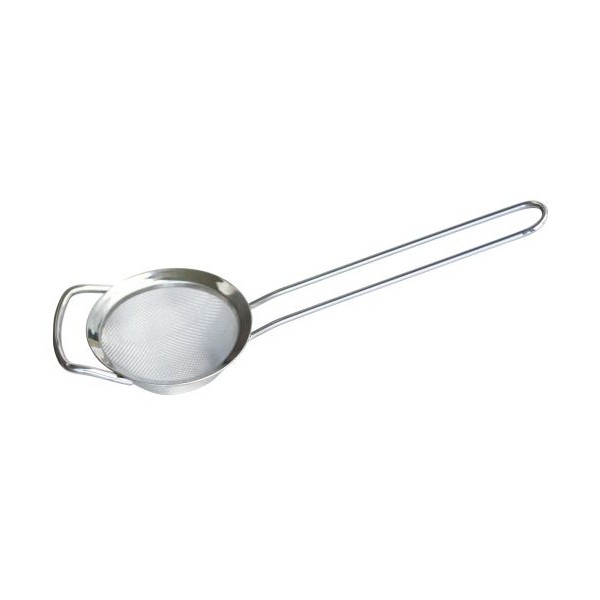 Escurridor de malla fina con patas y asas para mayor comodidad.